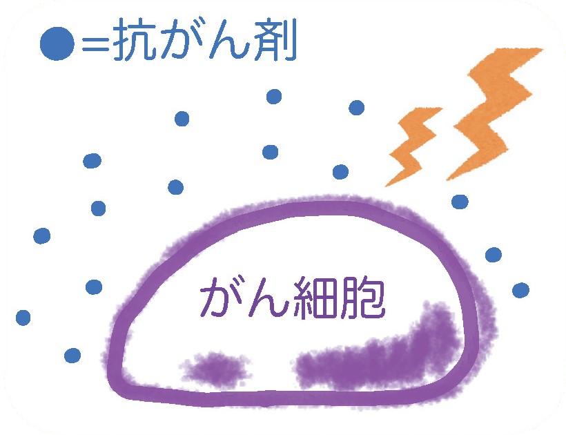 2. がん細胞の細胞膜に一時的に小さな孔 ( あな ) が開いて抗がん剤を細胞内に取り込みやすくなります